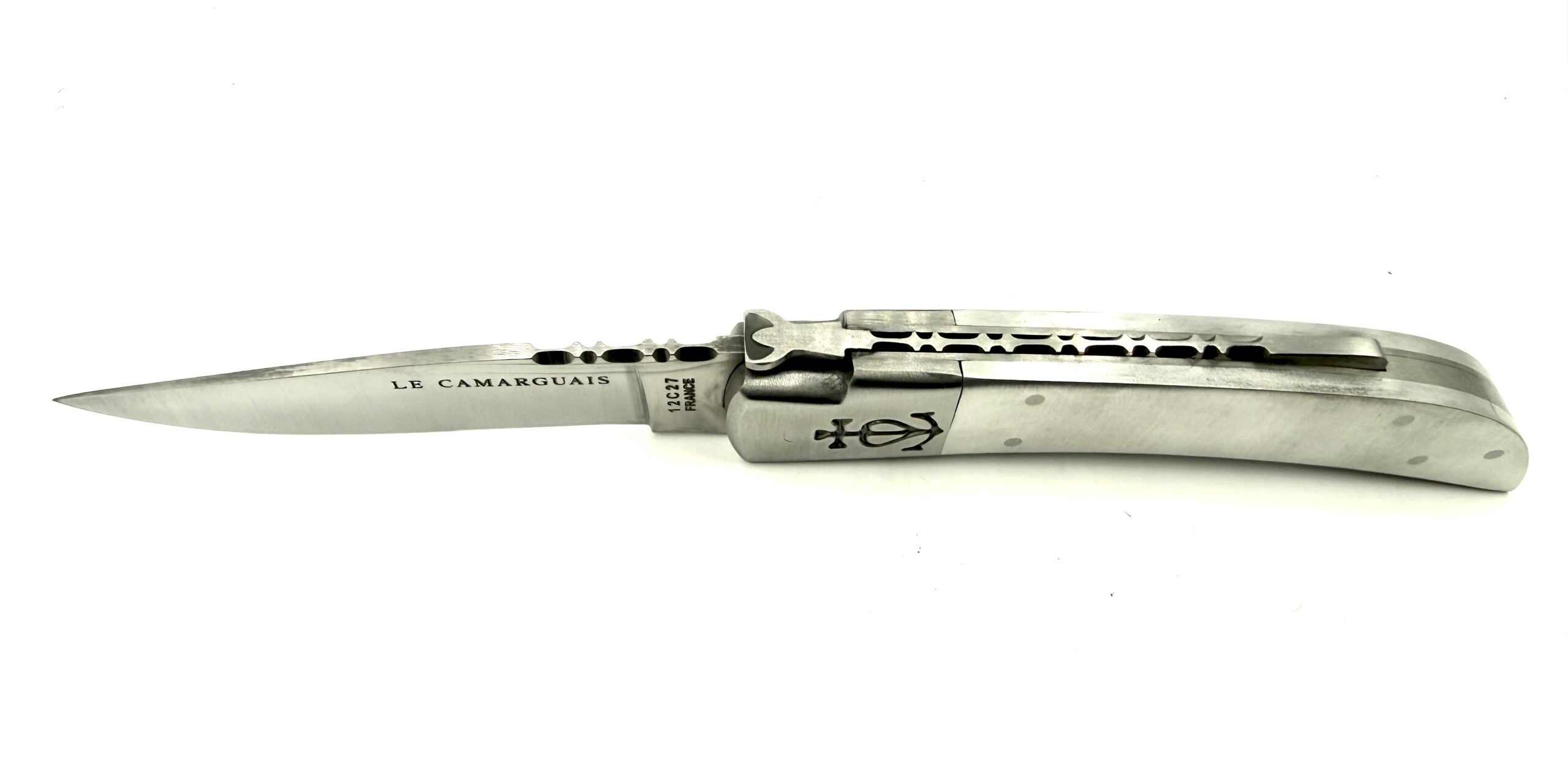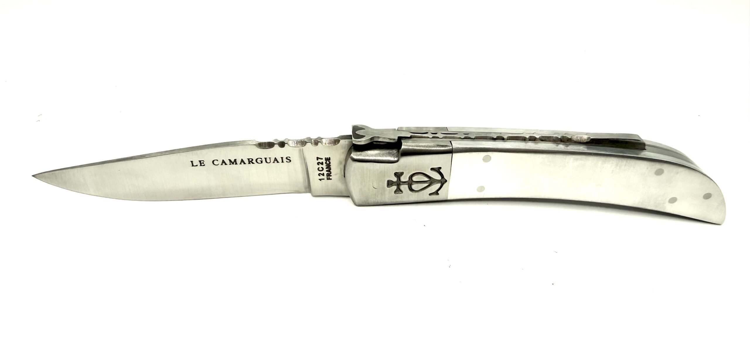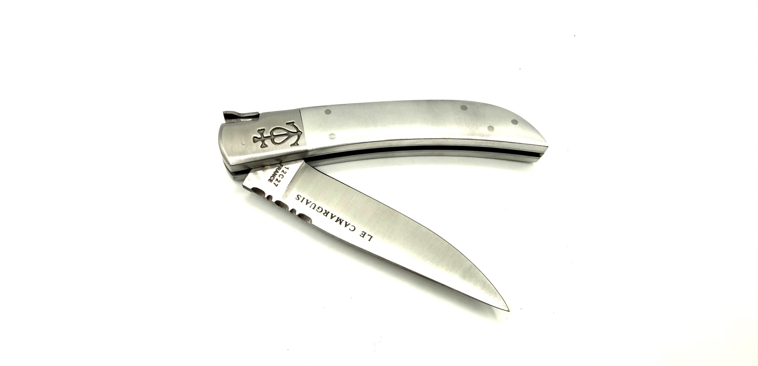 Le Camarguais n°12 est un couteau pliant emblématique, symbole de l’authenticité et de l’esprit libre de la Camargue. Sa ligne racée et élégante reflète un équilibre parfait entre sobriété, modernité et savoir-faire artisanal. La version avec manche en aluminium poli mat apporte légèreté, résistance et raffinement.