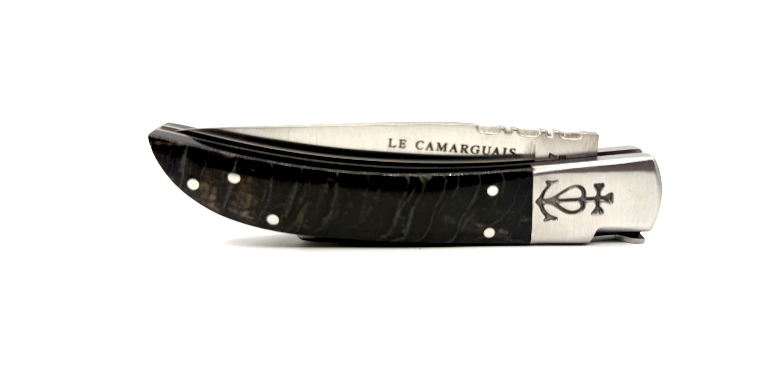 Travaillée avec soin, elle donne un manche lisse, agréable en main, tout en conservant son caractère rustique et élégant. C’est un matériau qui traverse le temps et qui rappelle les origines les plus anciennes de la coutellerie.