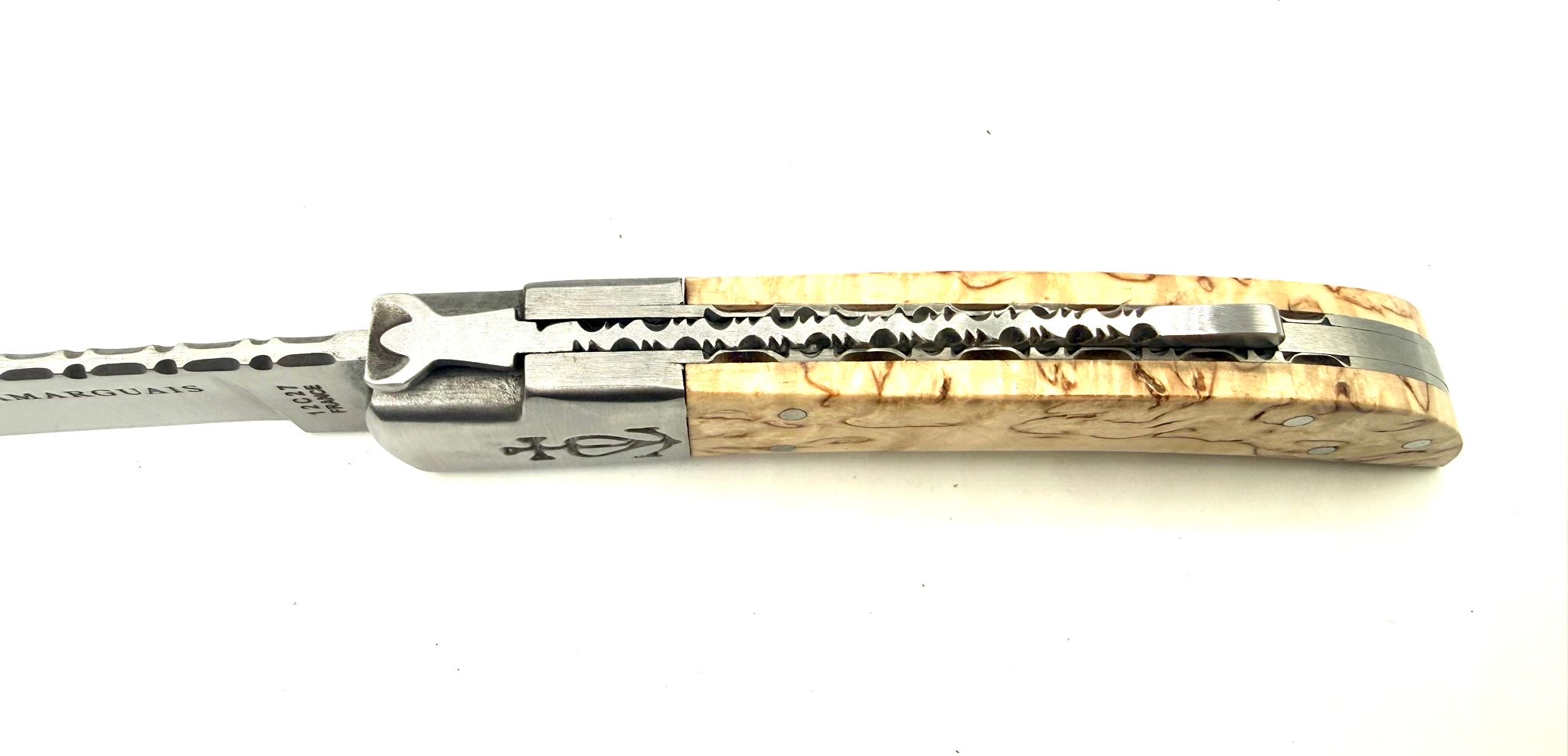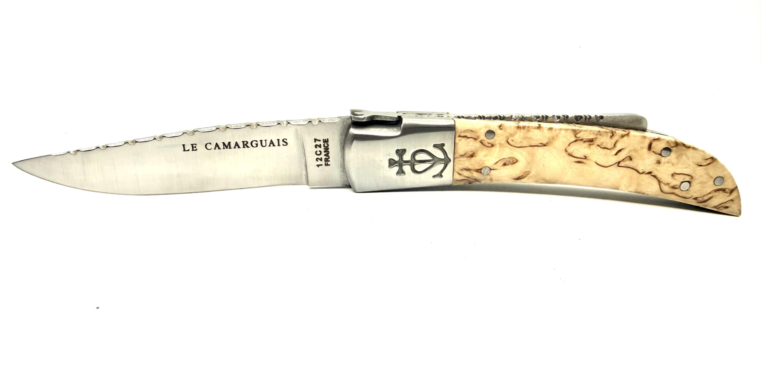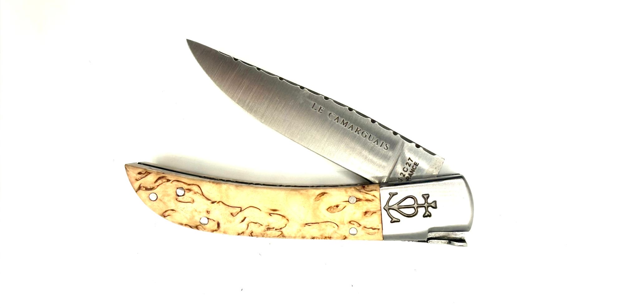 Le Camarguais forgé ciselé n°12 – Bouleau. Trident forgé au ressort du couteau