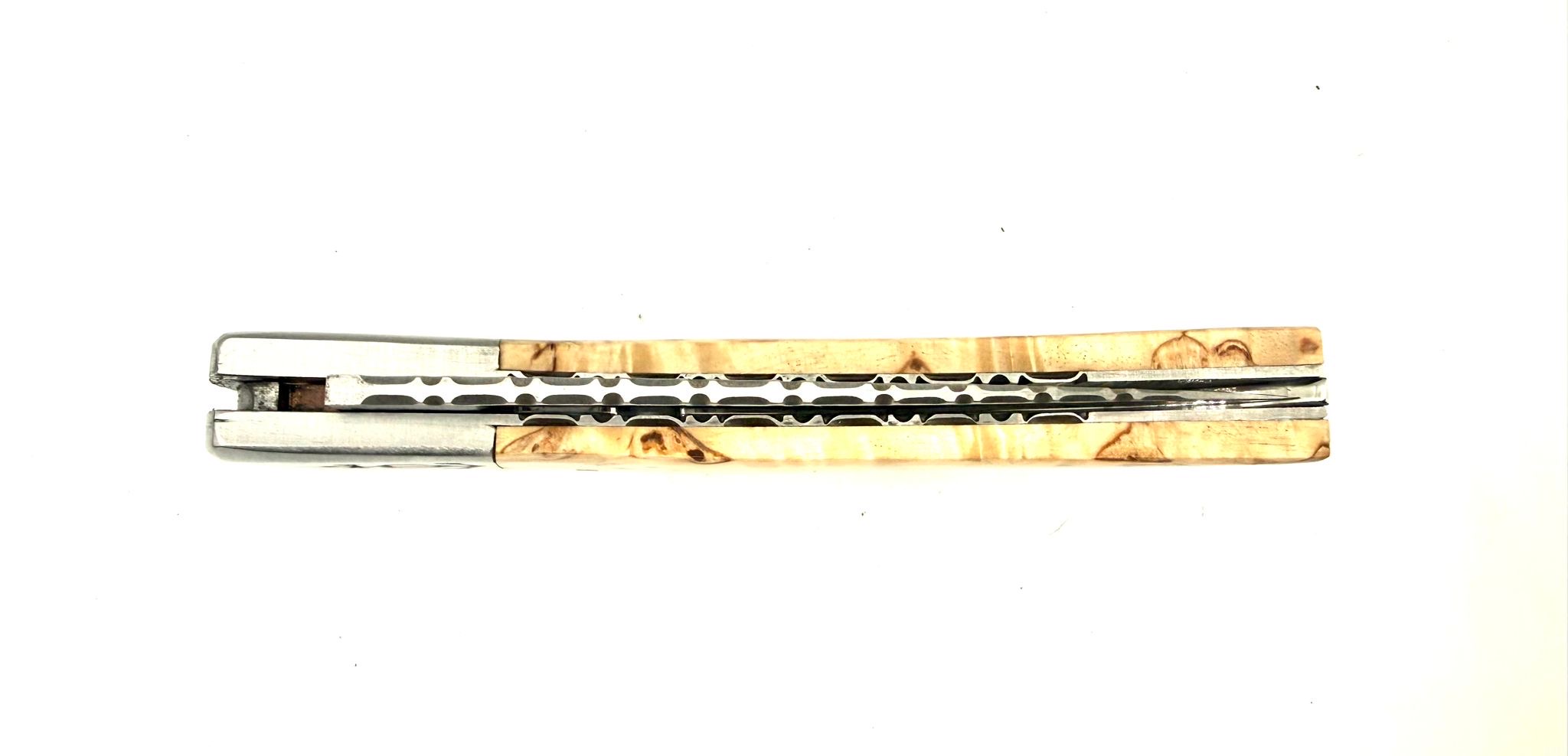 Ensuite, ce modèle se distingue grâce à son ciselage artisanal. Pour cela, le coutelier travaille chaque élément à la main à la lime triangulaire. De cette façon, il orne les platines, le ressort, le levier et la lame de petits motifs réguliers.