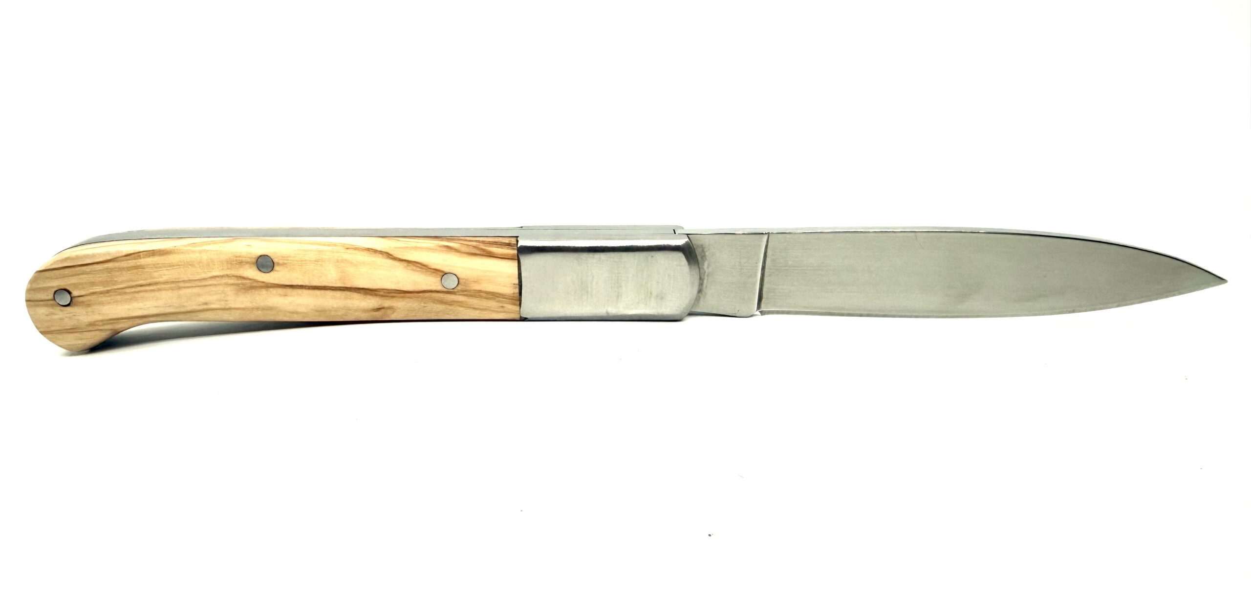 Son manche est taillé dans un bois d’olivier soigneusement sélectionné, apprécié pour ses nervures dorées et contrastées ainsi que pour sa densité naturelle. Agréable au toucher, il offre une excellente prise en main et confère à chaque pièce une esthétique unique, chaleureuse et intemporelle.